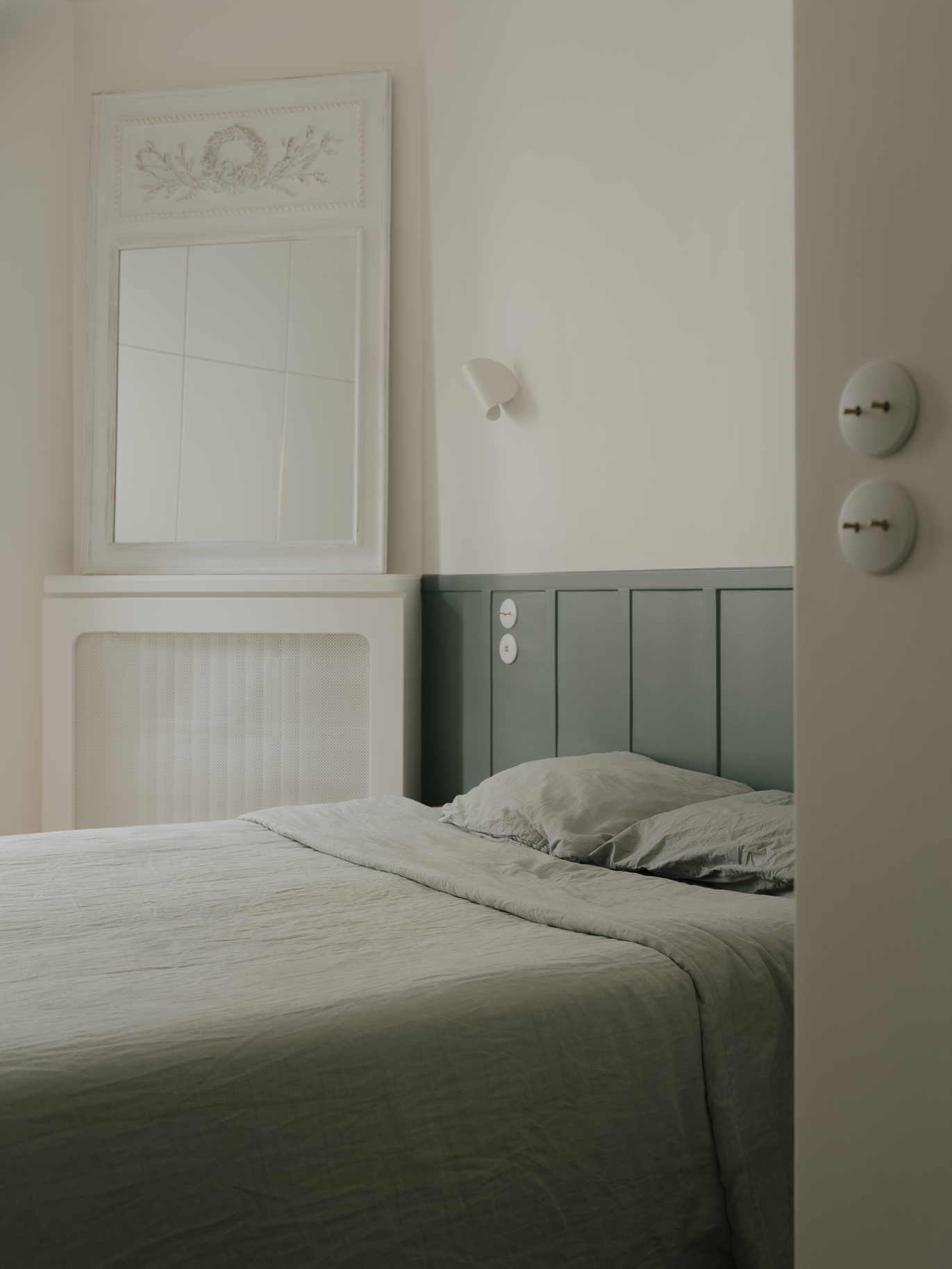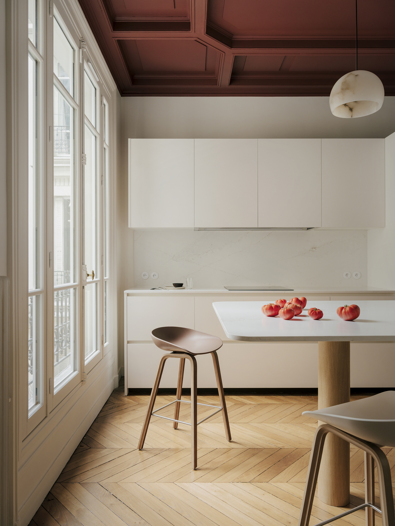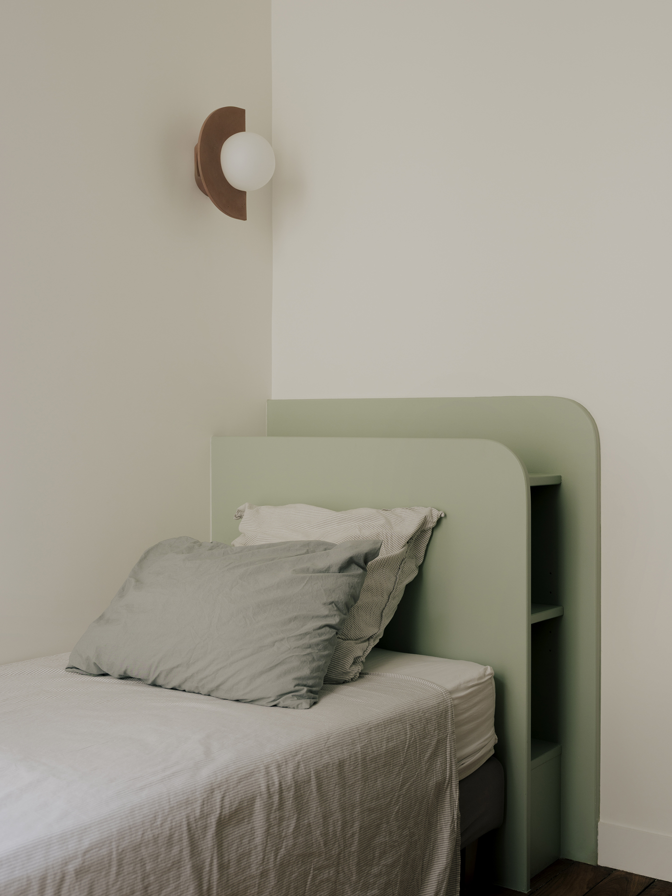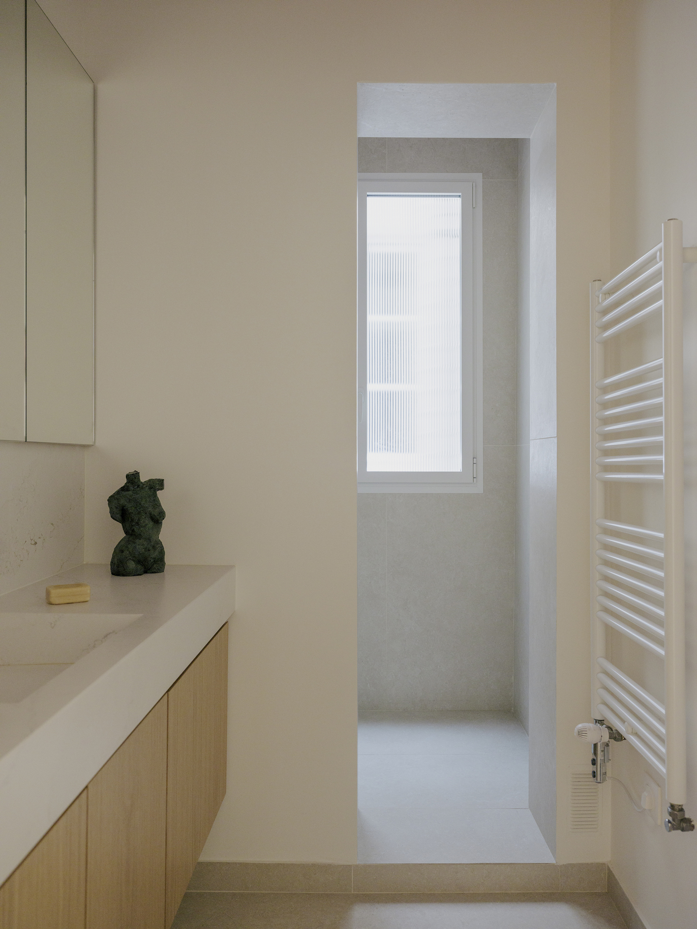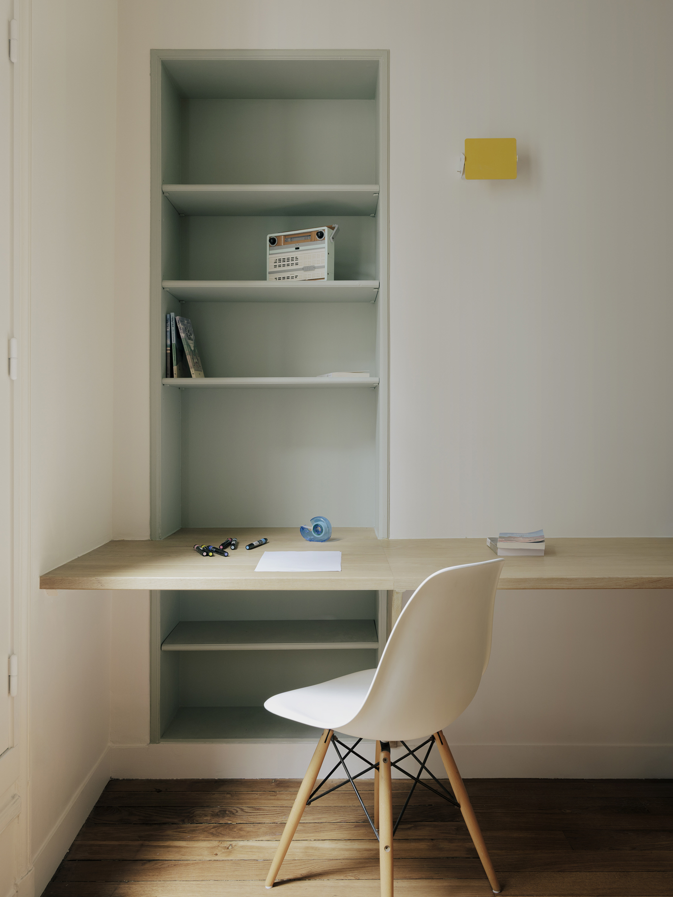 Le projet s’articule autour d’un décloisonnement des espaces et d’un déplacement des fonctions afin de révéler la générosité du lieu. Malgré la présence de couloirs contraints par la structure existante du bien, chaque recoin a été optimisé pour retrouver fluidité et cohérence. Le patrimoine ancien a été mis en valeur grâce à un travail attentif sur la lumière, la couleur et le confort acoustique et thermique, les teintes choisies permettant de donner de la profondeur et d’accentuer les volumes. En étroite collaboration avec les clients, un mobilier sur mesure a été conçu pour répondre aux besoins de chacun et offrir un cadre de vie à la fois fonctionnel, harmonieux et singulier.