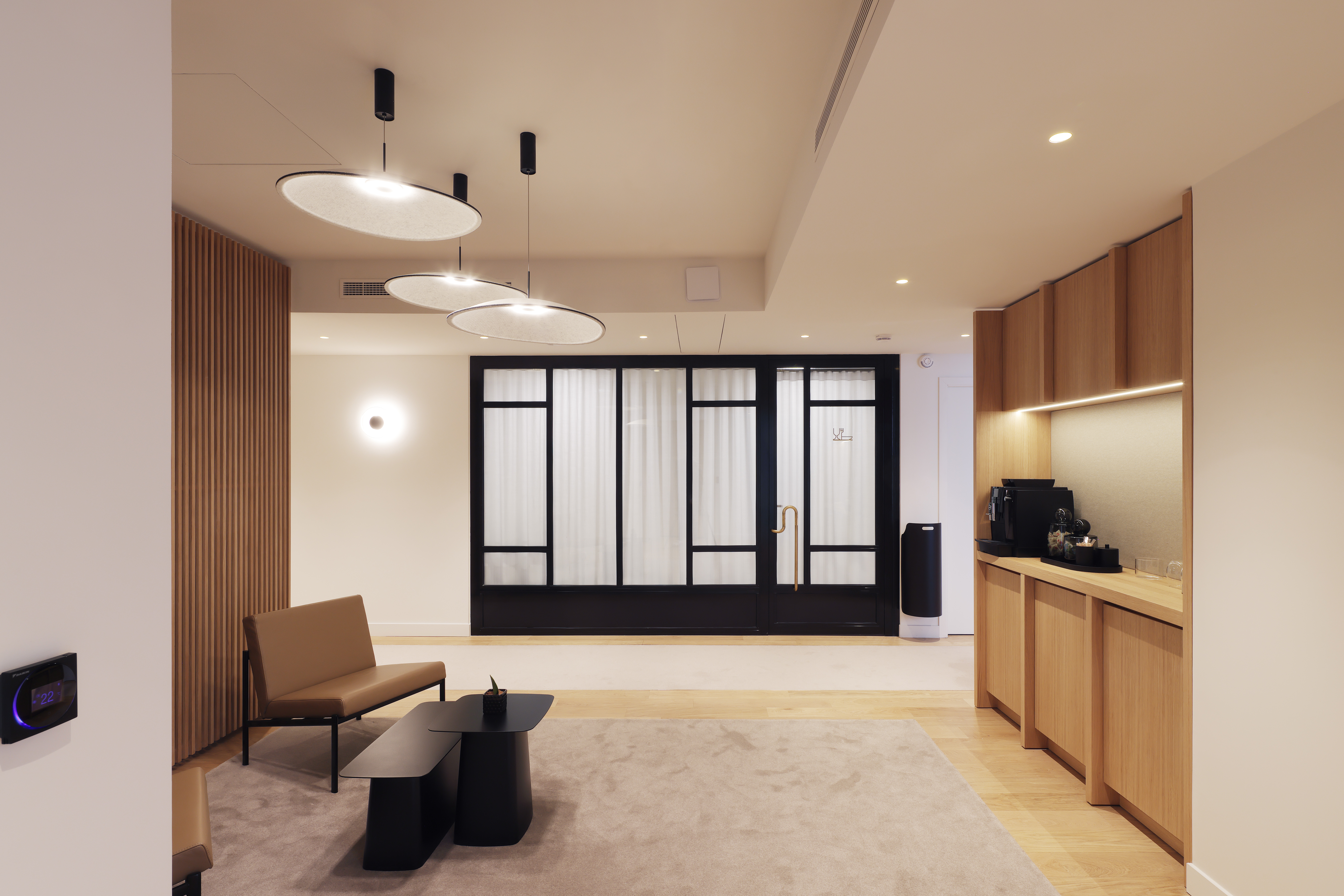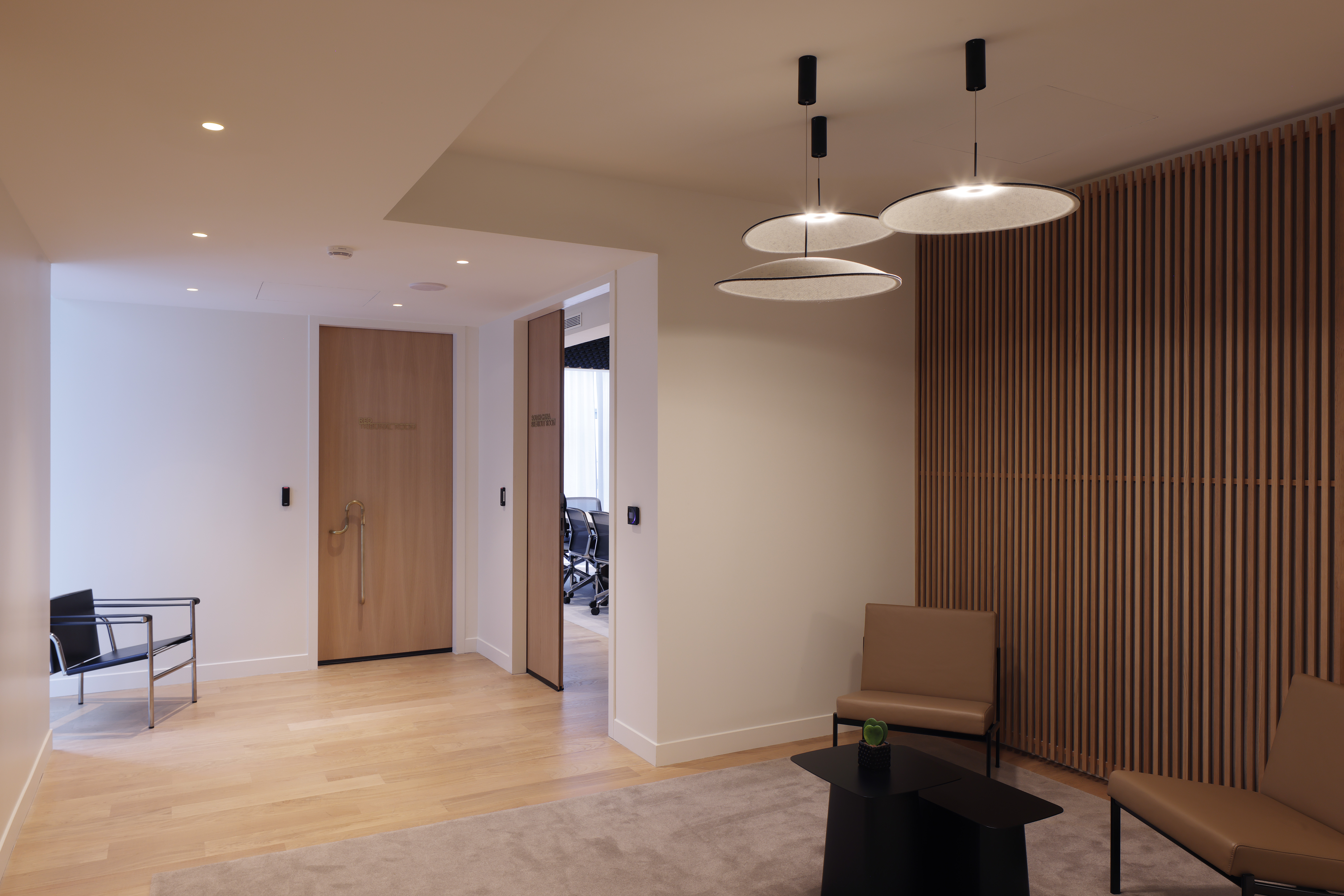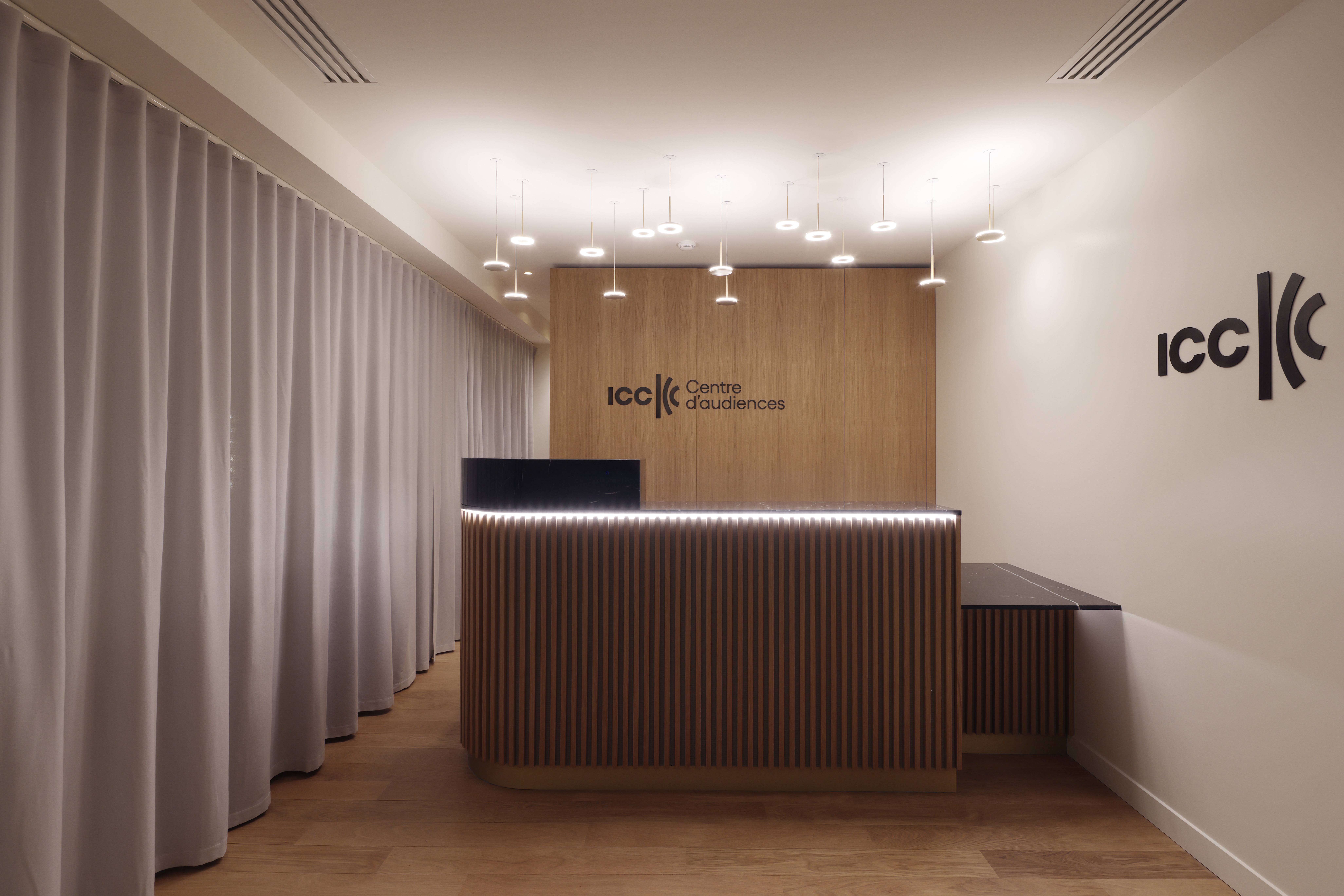 Au cœur d’une opération immobilière transformant un ancien parking en centre d’affaires, la Chambre de Commerce Internationale a trouvé l’écrin idéal pour son futur centre d’audience. Notre mission a consisté à adapter un plateau initialement conçu pour des bureaux afin d’y créer des espaces répondant aux exigences techniques et fonctionnelles propres à l’activité de l’ICC. En concertation étroite avec le propriétaire et les équipes de construction, nous avons repensé les volumes, l’acoustique, la lumière et l’identité du lieu. La mise en valeur du béton brut et la précision des aménagements confèrent à l’ensemble une atmosphère sobre, contemporaine et parfaitement adaptée à la solennité des audiences internationales.