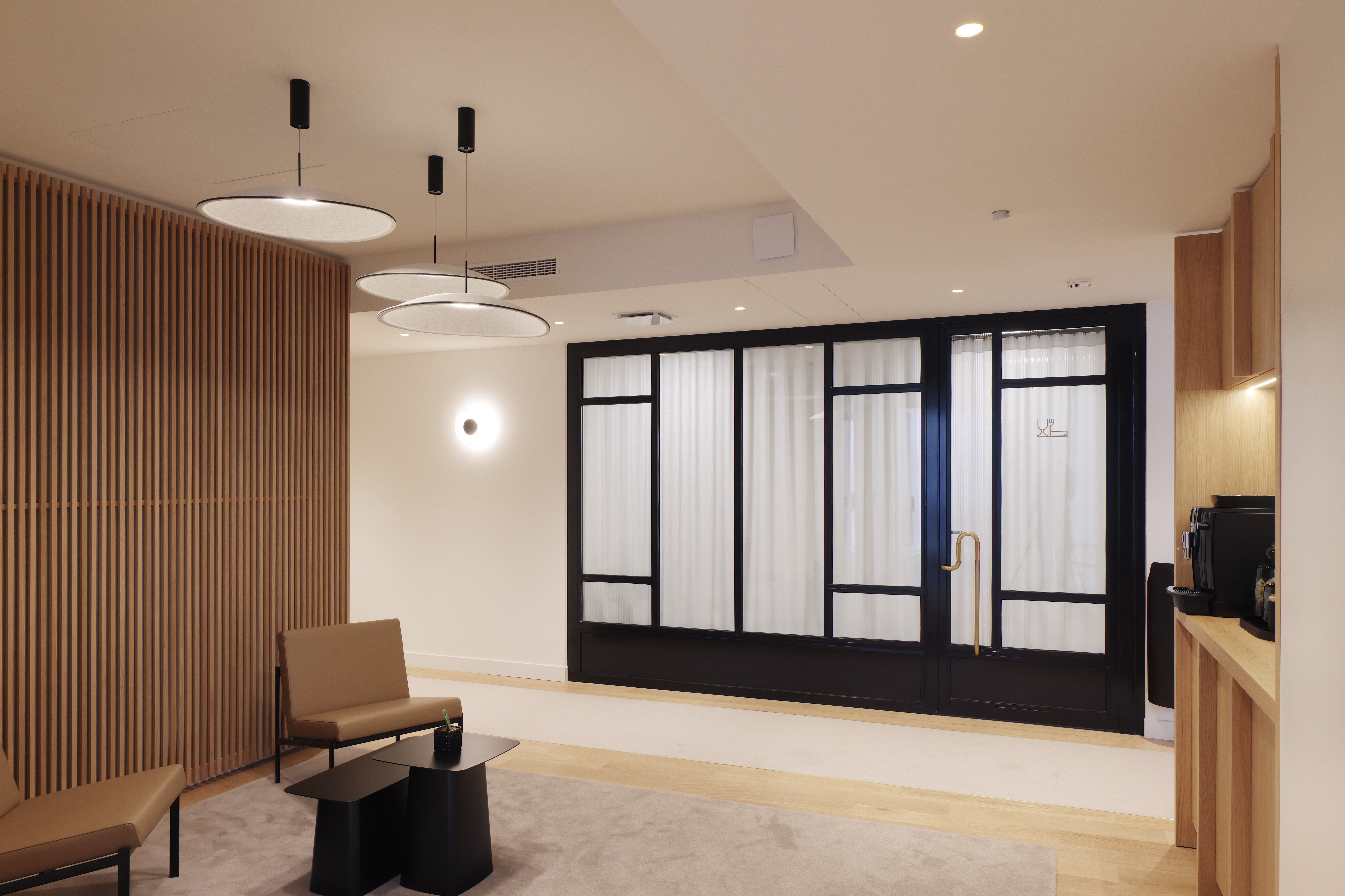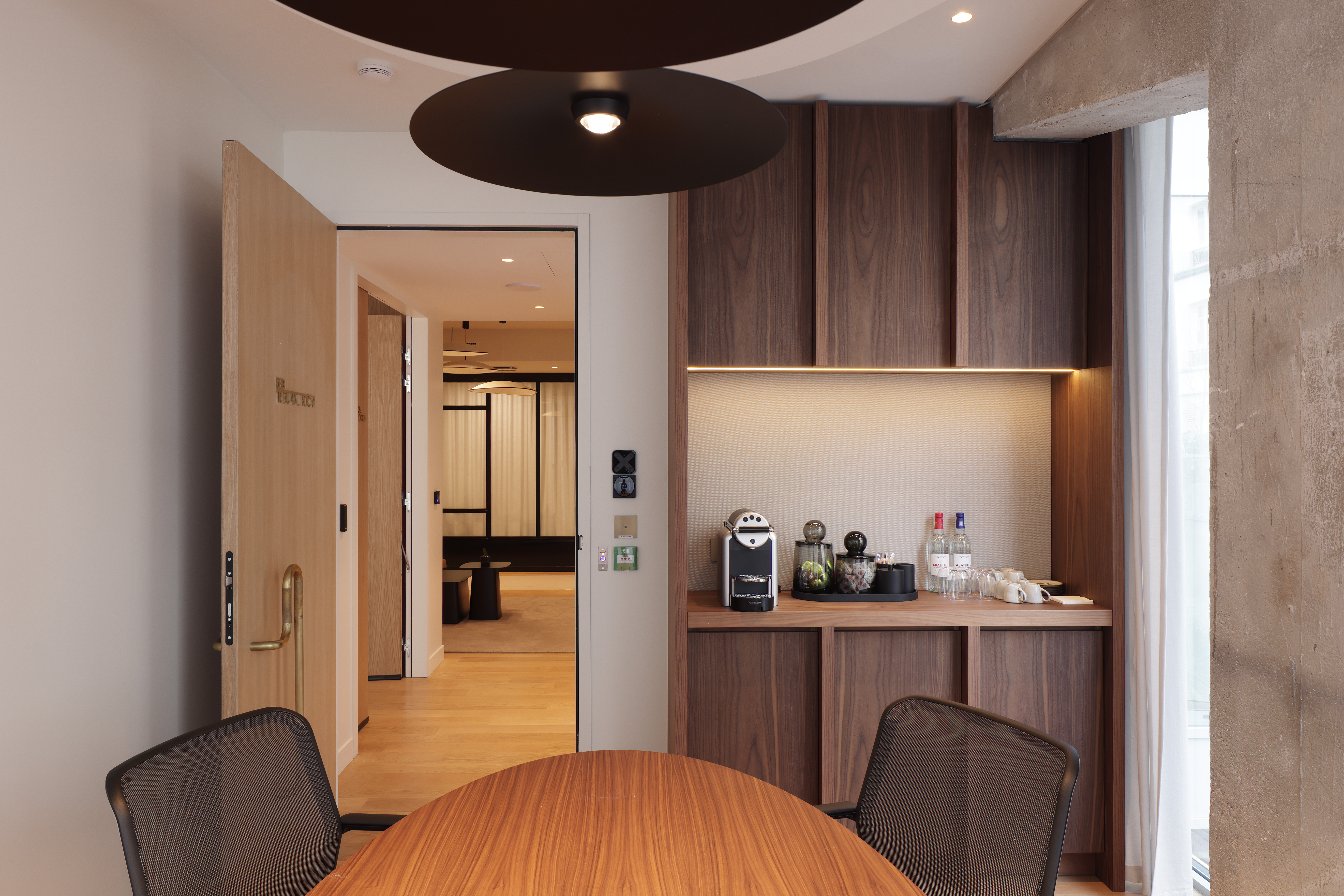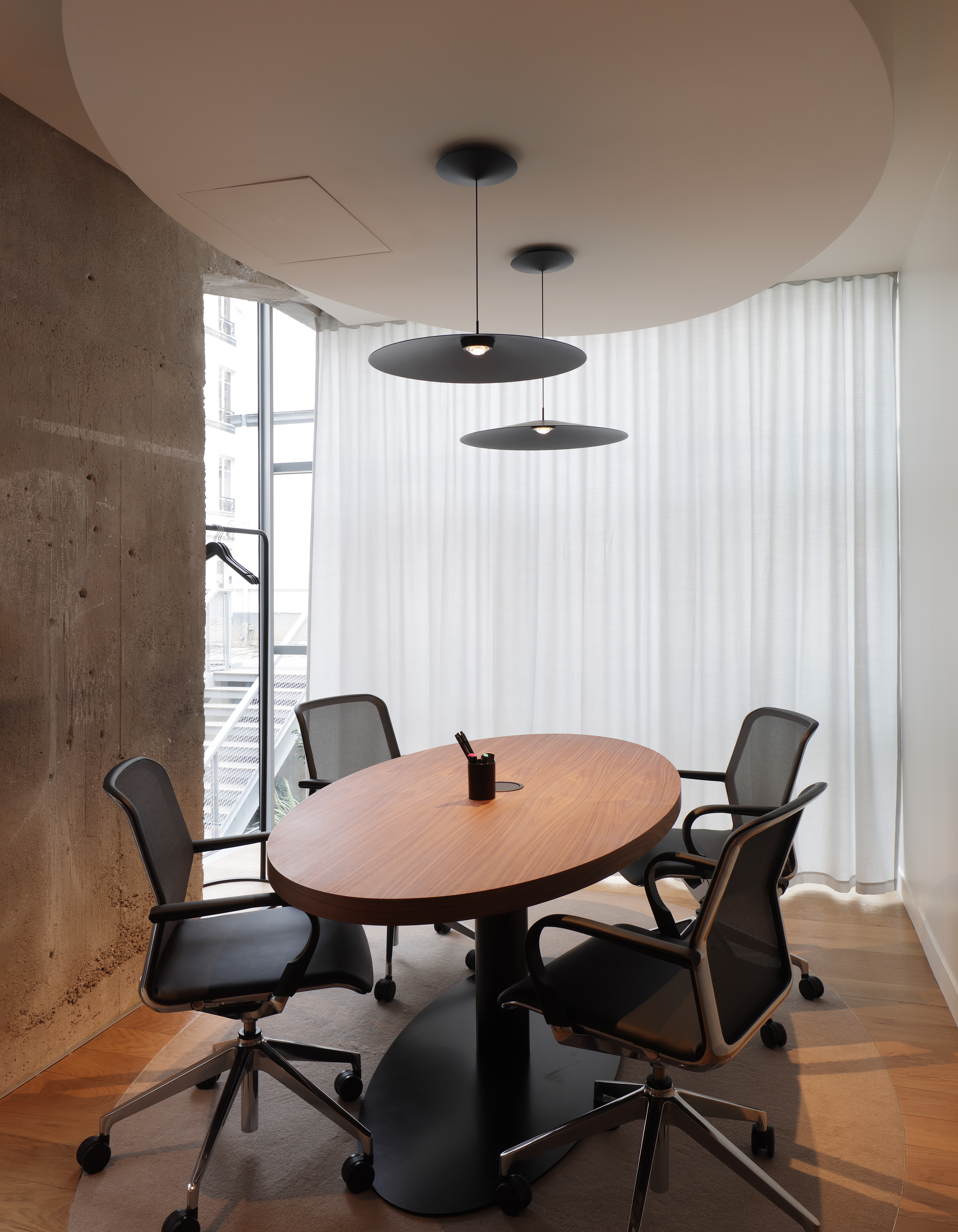 Au cœur d’une opération immobilière transformant un ancien parking en centre d’affaires, la Chambre de Commerce Internationale a trouvé l’écrin idéal pour son futur centre d’audience. Notre mission a consisté à adapter un plateau initialement conçu pour des bureaux afin d’y créer des espaces répondant aux exigences techniques et fonctionnelles propres à l’activité de l’ICC. En concertation étroite avec le propriétaire et les équipes de construction, nous avons repensé les volumes, l’acoustique, la lumière et l’identité du lieu. La mise en valeur du béton brut et la précision des aménagements confèrent à l’ensemble une atmosphère sobre, contemporaine et parfaitement adaptée à la solennité des audiences internationales.