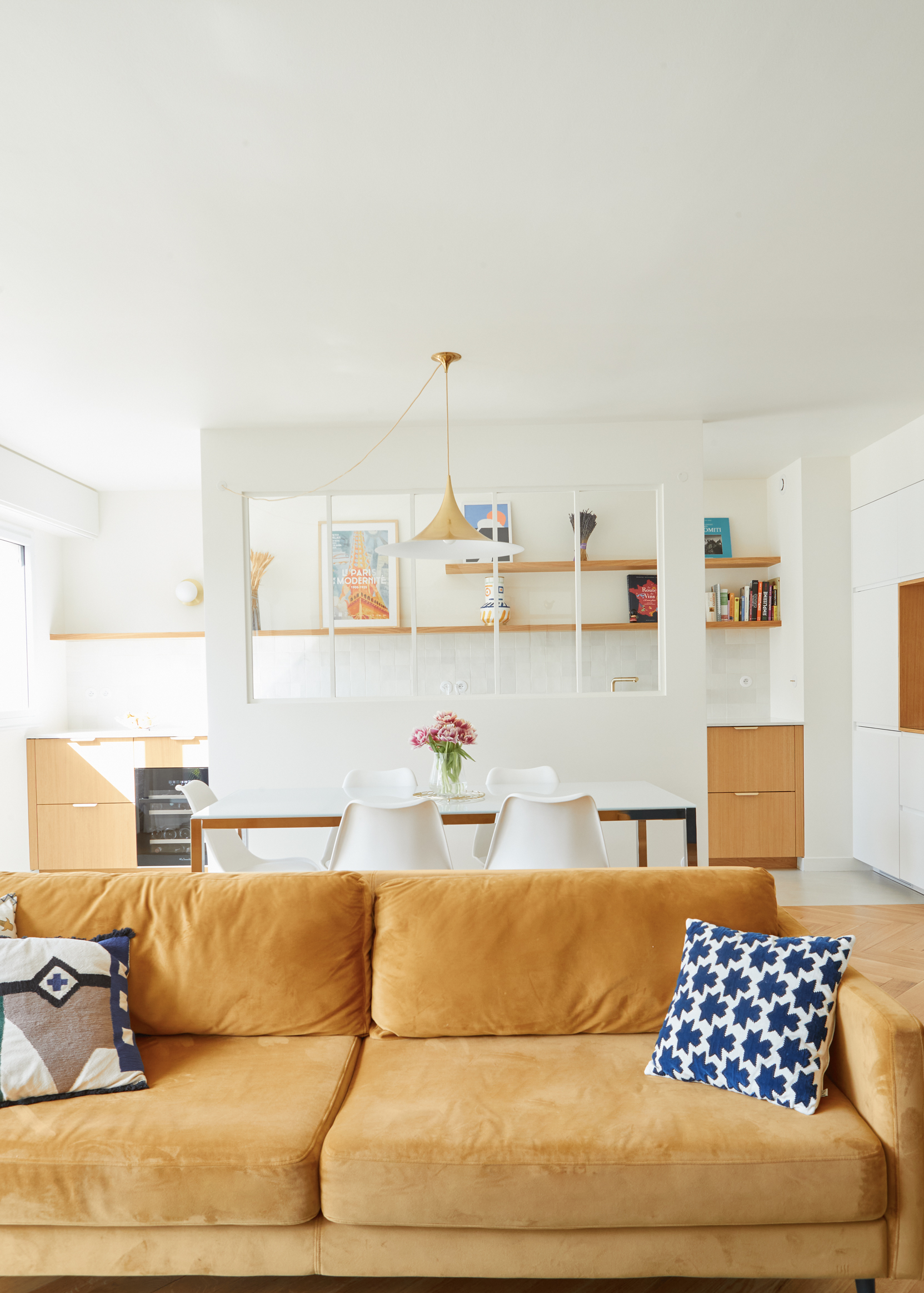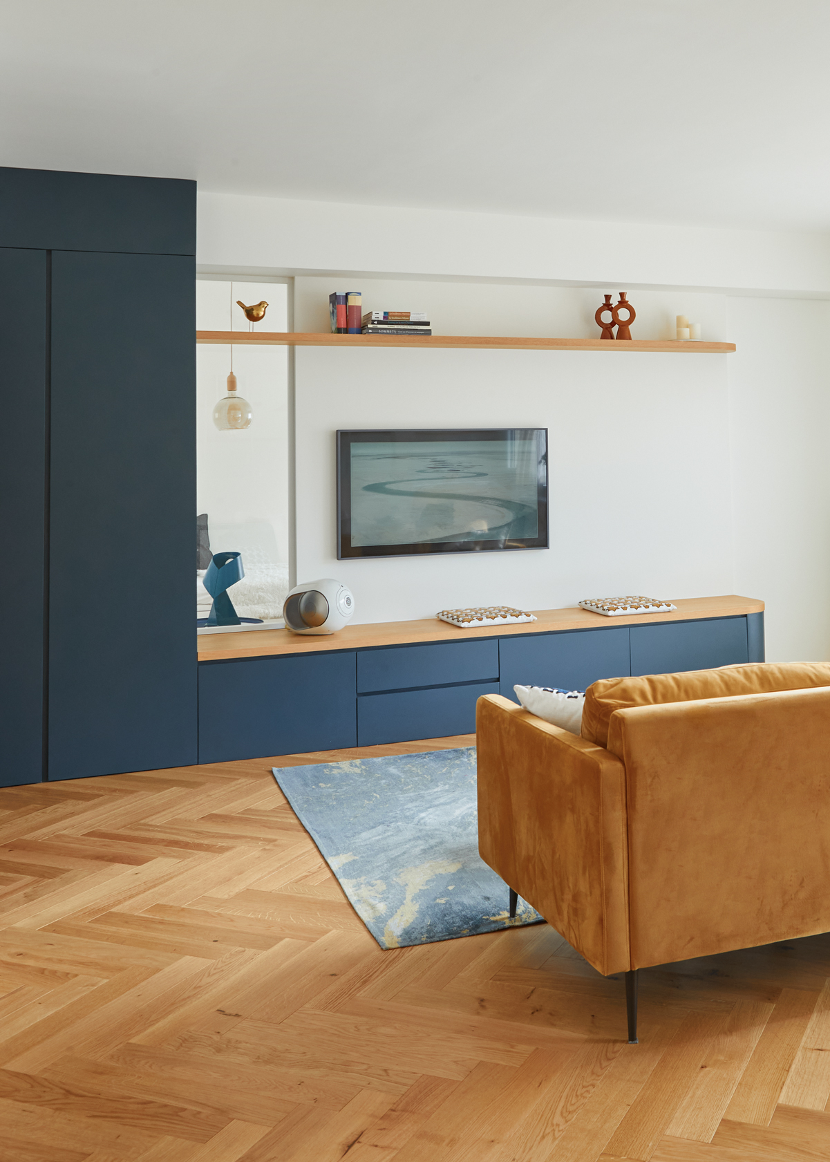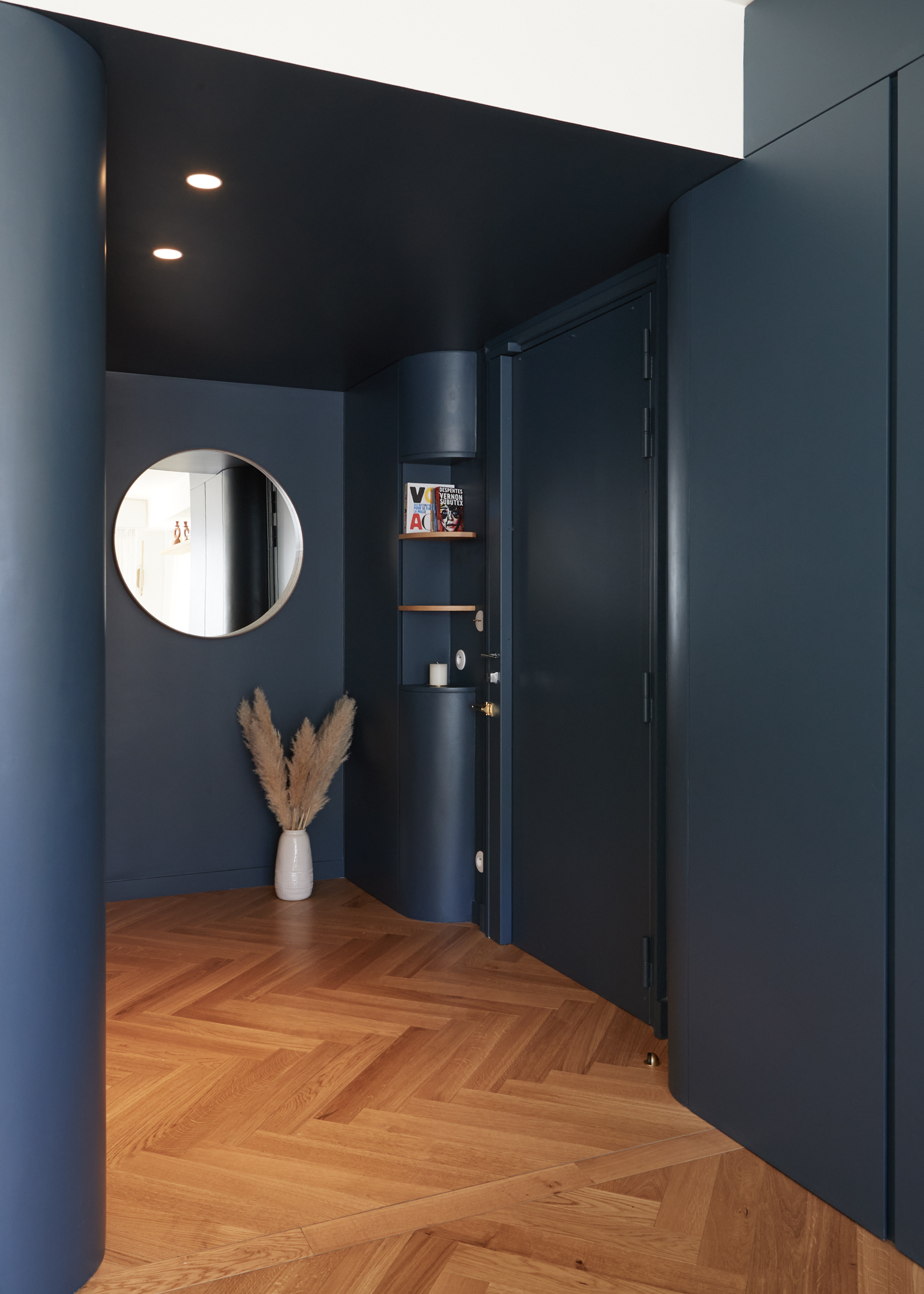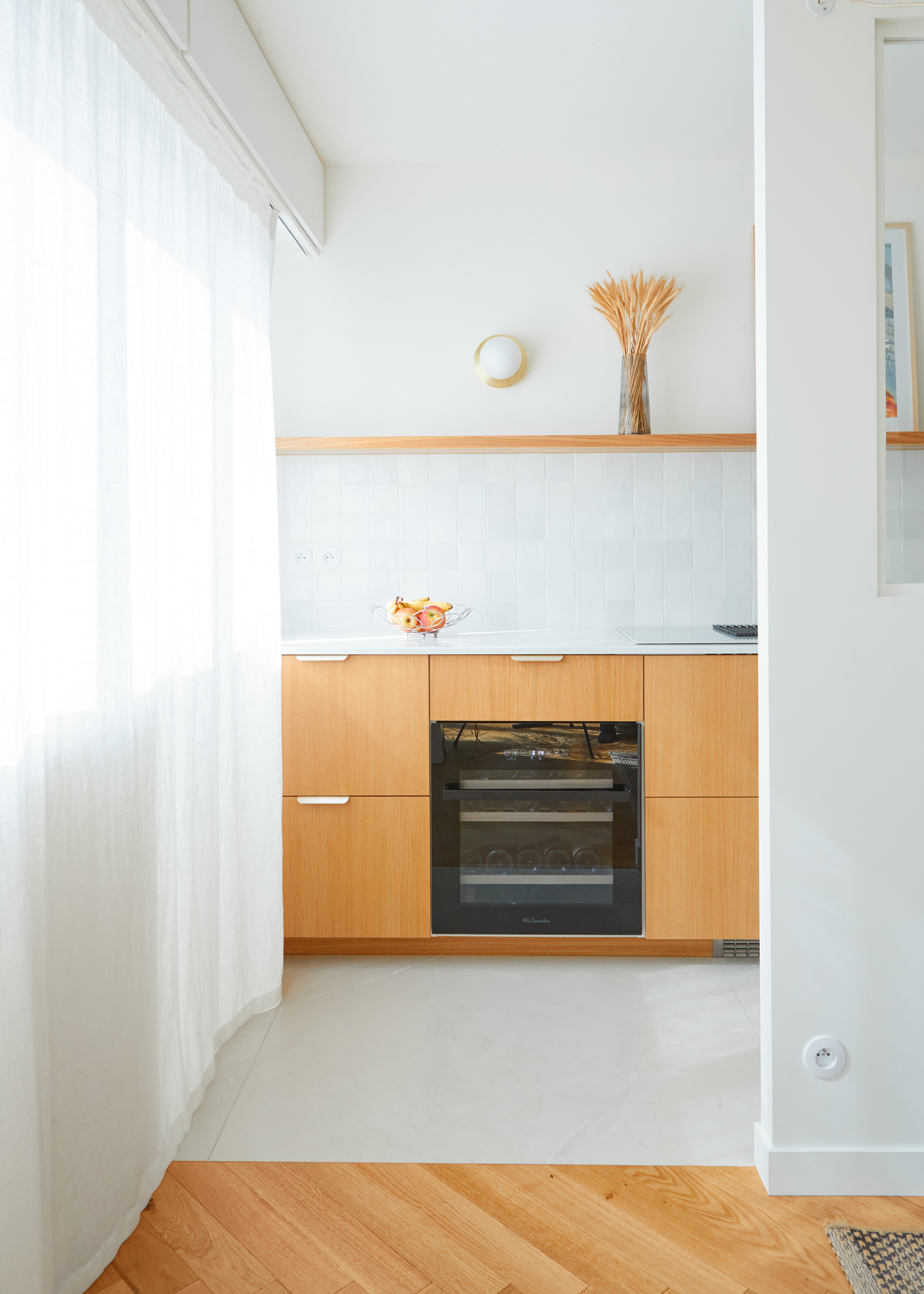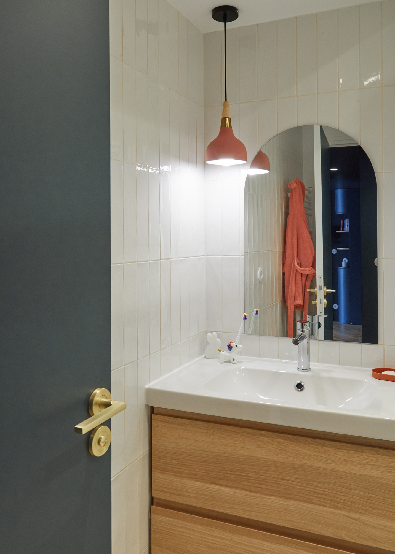 Cette rénovation complète a permis de réinventer un appartement familial autour de la lumière, véritable fil conducteur du projet. Chaque espace a été repensé pour offrir fluidité et générosité, tandis que le cloisonnement a été entièrement revu afin de créer des volumes ouverts et polyvalents. Fonctions déplacées et pièces multifonction dessinent aujourd’hui un lieu à la fois lumineux, vivant et parfaitement adapté à la vie de famille.